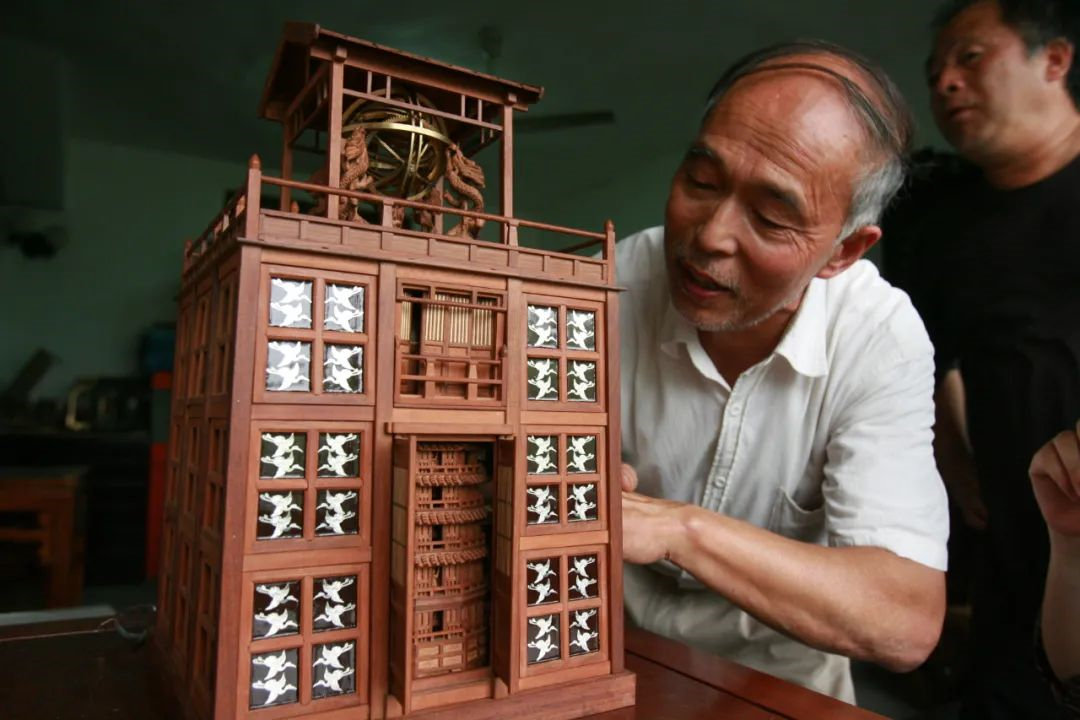 2008年西班牙世博会,我所制造的微型水运仪象台就曾入选参展团,代表中国亮相于世界舞台上,广受各国游客好评。囿于当时略逊的技术条件与严苛的时间限制,那台1/20比例的精美水运仪并不能运转,这不得不说是一种遗憾。自那时起十年来,应各地邀约,我们走访四处展览,也曾见过林林总总的袖珍水钟。但它们普遍以恒定细流持续冲击转轮提供动力,并无擒纵结构,技术含量低,计时误差较大。
